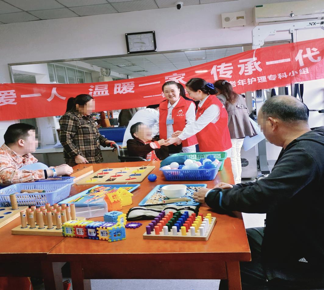 活動伊始,康復科內(nèi)便洋溢著溫馨與歡樂的氣氛??祻蛯?茍F隊不僅用親切的問候和節(jié)日的祝福包圍每一位長者,更通過心理疏導和情感支持,鼓勵他們樹立康復信心,從內(nèi)心深處激發(fā)主動參與訓練的意愿。一聲聲“爺爺/奶奶,您今天氣色真好!”一句句“這個動作您做得比昨天更標準了!”傳遞的是尊重,建立的是信任,夯實的是醫(yī)患攜手共抗疾病的堅實橋梁。