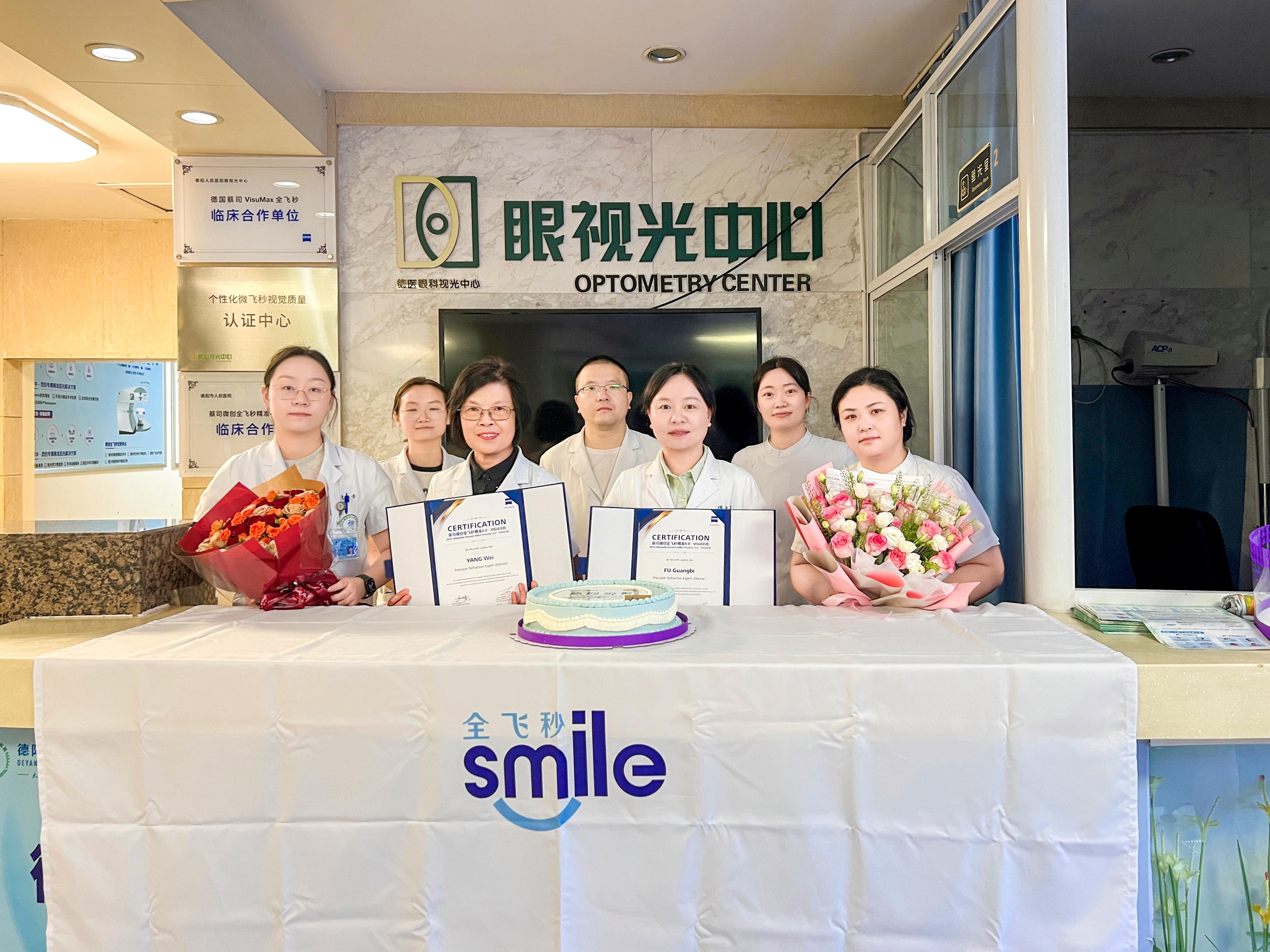 8月22日,在視光學中心眾多醫(yī)護人員的共同見證下,蔡司代表為羊薇、傅光碧醫(yī)生頒發(fā)“微創(chuàng)全飛秒精準4.0-VISULYZE手術(shù)認證醫(yī)師”證書。