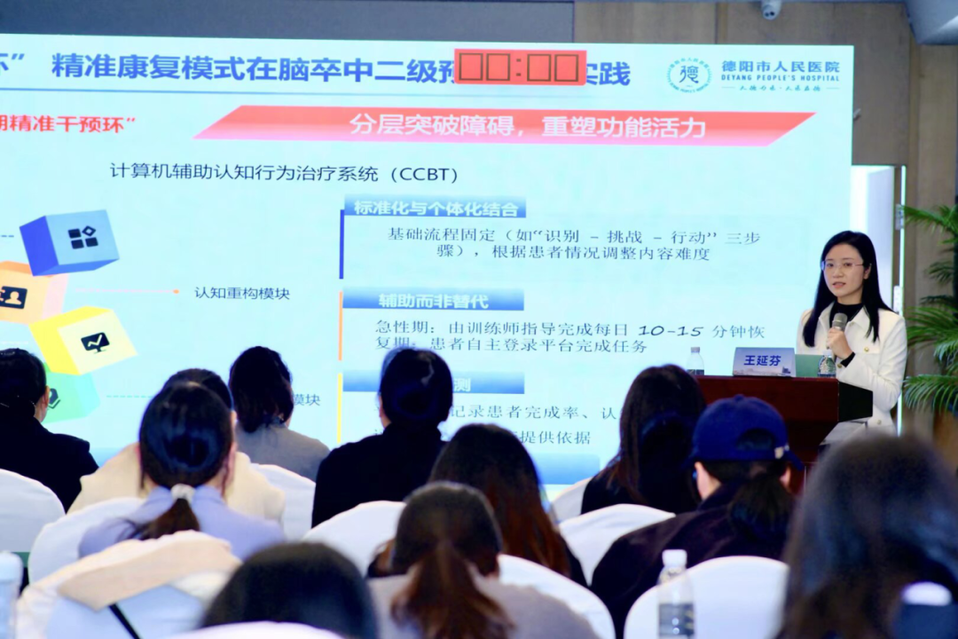 德陽市人民醫(yī)院陳洪主任聚焦《血管性認(rèn)知障礙的評估與治療》,呼吁臨床重視血管性認(rèn)知障礙的早期識別與綜合干預(yù)。王延芬護(hù)士長的《精準(zhǔn)康復(fù)護(hù)理在腦卒中二級預(yù)防中的應(yīng)用》,詳細(xì)介紹了“一鏈多環(huán)”精準(zhǔn)康復(fù)模式在二級預(yù)防中的實踐,強調(diào)通過規(guī)范篩查、耐心隨訪和多學(xué)科協(xié)作,為卒中患者筑起堅實的長期健康防線。