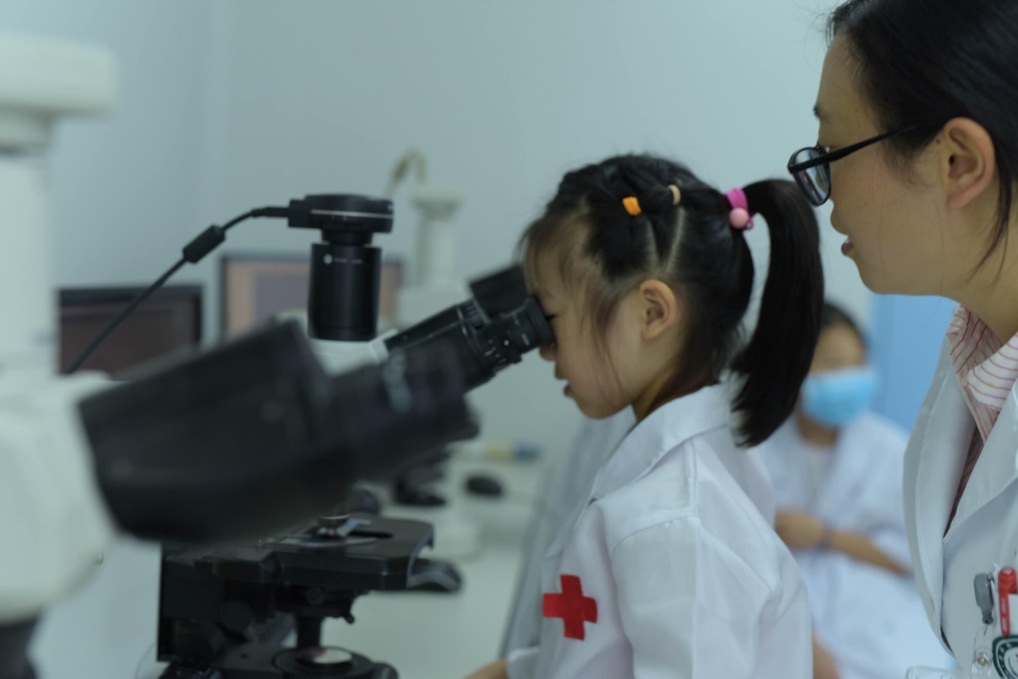 最受孩子們期待的環(huán)節(jié)是“醫(yī)療科技體驗(yàn)站”。在專業(yè)導(dǎo)師的引導(dǎo)下,孩子們第一次在顯微鏡下觀察到精子的運(yùn)動(dòng)形態(tài),認(rèn)識(shí)到生命最初的奇妙景象,并近距離接觸到染色體的奧秘。微觀世界的直觀呈現(xiàn),讓孩子們發(fā)出陣陣驚嘆。