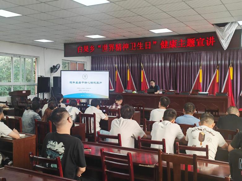 與此同時,一場專門針對白果鄉(xiāng)政務(wù)工作人員的心理健康課堂同步舉行。心身醫(yī)學(xué)科主任劉平以“壓力管理與心身調(diào)適”為主題,為長期奮戰(zhàn)在基層一線的政務(wù)工作者們帶來了一場深入淺出的專題講座。劉平主任結(jié)合基層工作特點(diǎn),詳細(xì)講解了常見精神心理問題的早期識別信號、有效應(yīng)對策略以及自我心身健康的維護(hù)方法。課程旨在增強(qiáng)基層工作人員的心理韌性,提升其服務(wù)群眾和處理復(fù)雜事務(wù)的能力,同時也呼吁大家在工作之余,學(xué)會關(guān)愛自我,保持積極樂觀的心身狀態(tài)。
